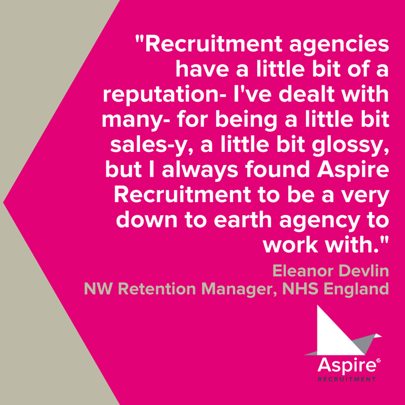 Absolutely, yeah! We would recommend Aspire Recruitment to any provider looking for that level of staff within GM, not necessarily just within healthcare. We've got links to social care colleagues, and I've recommended Aspire Recruitment to them!