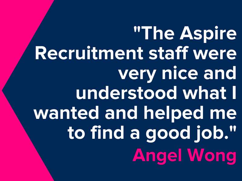 Angel Wong moved to the UK and wasn’t sure where she was going to find her first role. In her initial job searches, she heard about Aspire Recruitment. Thanks to Aspire Recruitment, she managed to get her first ever job in the UK.